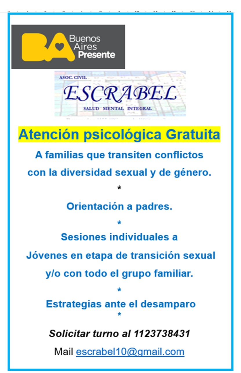 Sesiones individuales- en casos de diversidad sexual, que necesiten orientación y contención.